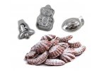 Eine Glockenform aus hochwertigem verzinntem Blech. Die Form ist 60 mm lang und 55 mm breit. Die Höhe der Form beträgt 15 mm. Die Packung enthält 10 Stück.