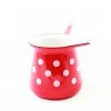 Emaille dezva für Kaffee mit einem Durchmesser von 9 cm Volumen 0,4l, ca. für 4 Kaffees. Länge inklusive Griff 20 cm