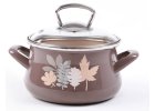 Emaille Topf mit Beryl-Deckel. Der Topf hat einen Durchmesser von 14cm und der Inhalt beträgt 1,2l.