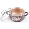 Dekorovaný hrnec na vaření vyrobený z kvalitního, českého smaltu. Hrnec je se skleněnou poklicí, v hnědé barvě. Hrnce a rendlíky z řady nádobí Javor jsou vhodné na všechny typy ohřevu a to včetně trouby. Smaltované nádobí Javor je jak praktické, tak ale i pěkné a poslouží Vám i jako krásná dekorace do Vaší kuchyně. Smaltované nádobí Javor je moderní, praktické a bude se u Vás v kuchyni vyjímat!