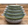 Dekorovaná miska vyrobená z kvalitního, českého smaltu. Miska je v zelenobílé barvě a s dekorem trávy a lístků. Misky, hrnce a rendlíky z řady nádobí se vzorem trávy jsou vhodné na všechny typy ohřevu a to včetně trouby. Smaltované nádobí je jak praktické, tak ale i pěkné a poslouží Vám i jako krásná dekorace do Vaší kuchyně. Smaltované nádobí je klasikou, která se skvěle hodí na český venkov a odráží české tradice. Stejně tak jako u řad nádobí s puntíkem, červené, modré, či hnědé, toto nádobí se ve Vaší kuchyni bude vyjímat!