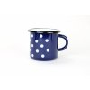 Smaltovaný hrneček v bílé barvě s modrými puntíky. Hrneček pojme obsah 0,4l. Hrnek má průměr 8cm.