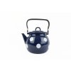 Smaltovaný čajník modrý Džbán pojme obsah 3,5l Výška konvice je 27cm, šířka i s uchem 25cm. Průměr základny činí 20cm.