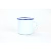 Smaltovaný hrnek bílý malý s modrým okrajem