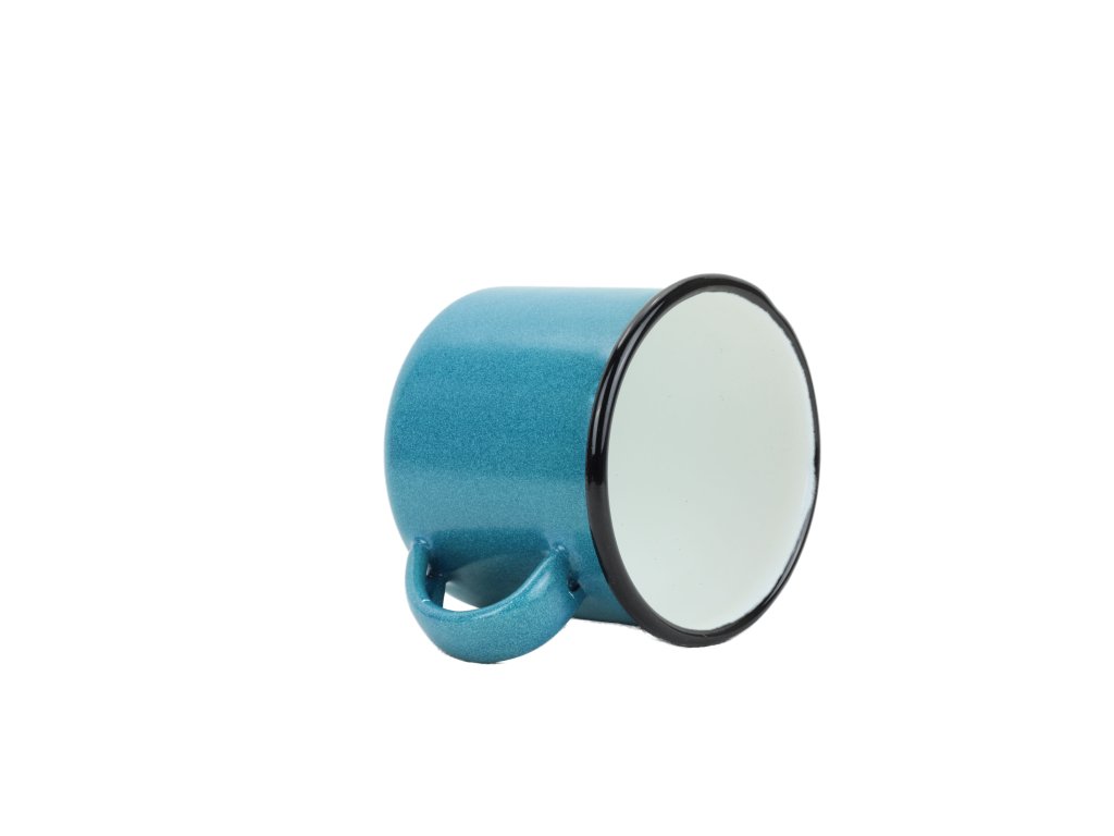 Smaltovaný hrneček modré barvy v designu flower