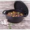 Součástí výrobku je litinová poklice. Je vybavena výstupky, které zajišťují zpětné odkapávání odpařené tekutiny.